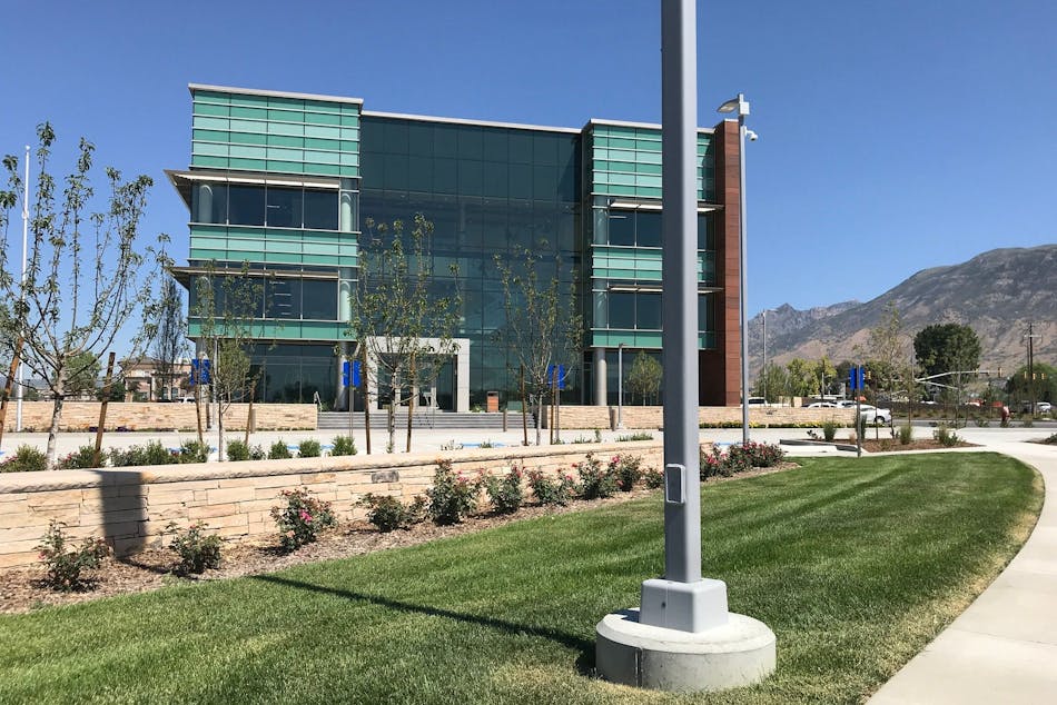doTerra's new 67,055-square-foot (6,230-square-meter) office building in Pleasant Grove, Utah used 127 Pole Base light pole bases manufactured by Mountain West Precast.